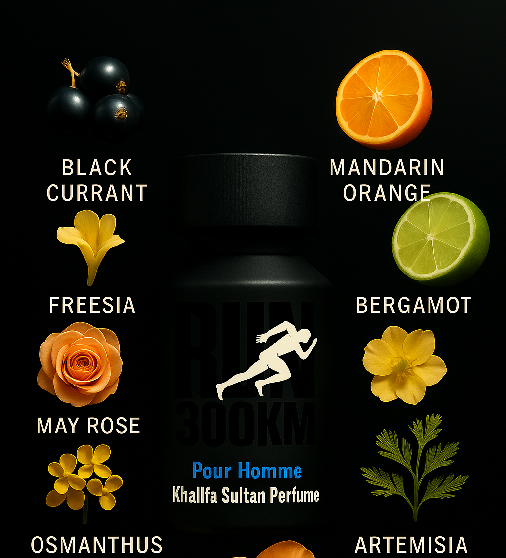 RUN 300KM by KHALIFA SULTAN PERFUME is a high-energy, long-lasting fragrance created for those who live life in the fast lane. Designed to match ambition with elegance, this scent is a powerful blend of freshness, floral finesse, and deep sensuality—crafted for unstoppable momentum.