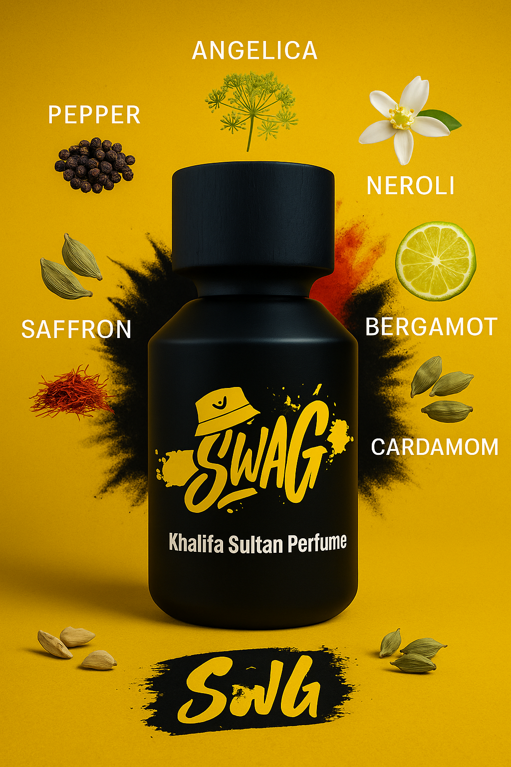 SWAG is a fearless, magnetic fragrance for those who lead with confidence and leave a lasting impression. It opens with a vibrant burst of Pepper, Angelica, Neroli, and zesty Bergamot, creating a sharp, fresh introduction that grabs attention from the first spray.