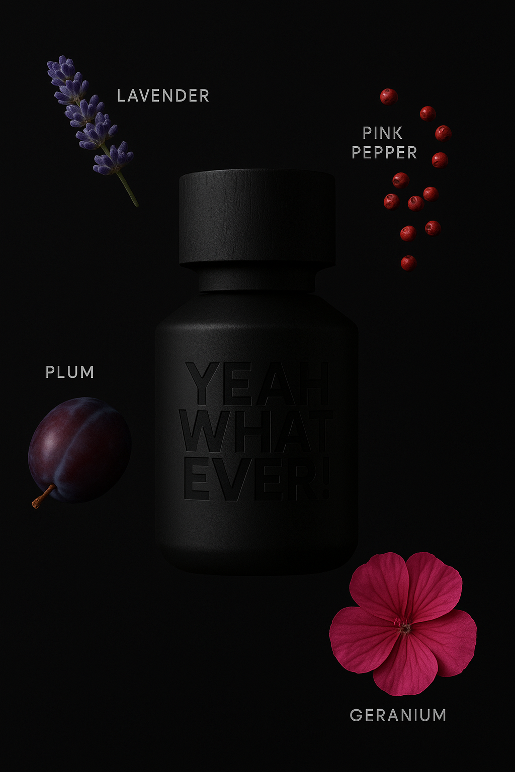 At the heart, plum adds a juicy, slightly sweet richness, balanced by geranium’s green, floral edge. This combination is modern, intriguing, and totally unpredictable—just like the name.